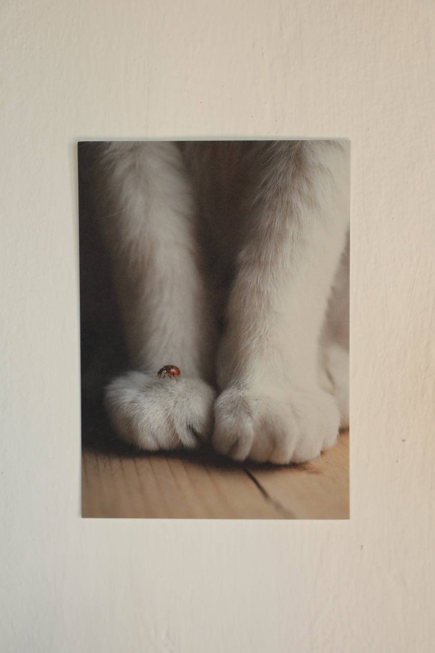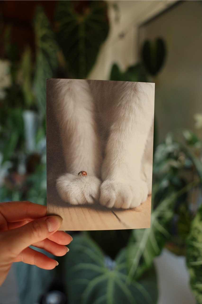 Postkarte Katze “Marienkäferglück”